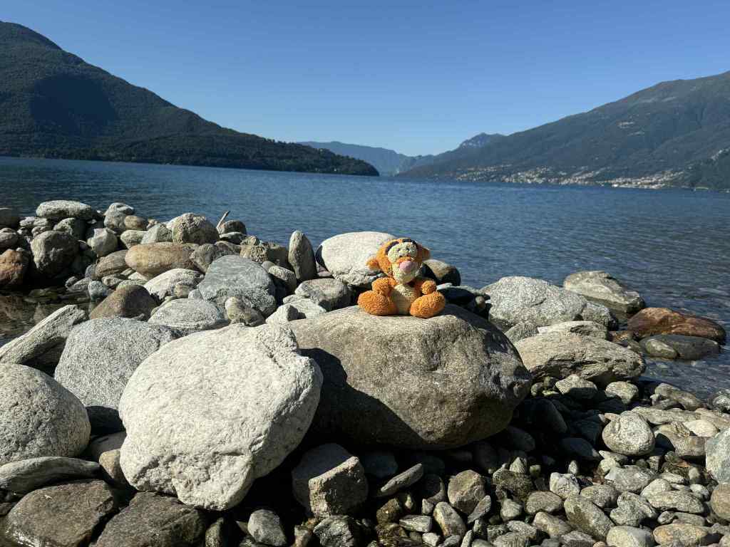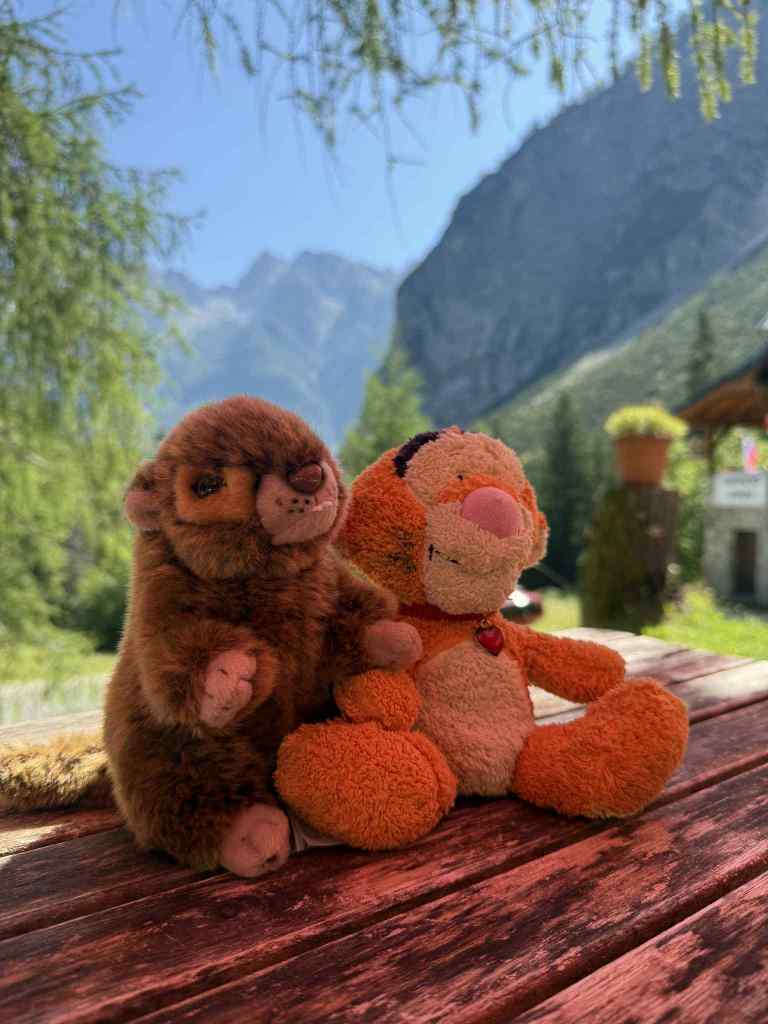 We slept really well (wine would do that to you) and didn’t wake up to a hangover headache. The sun was shining and it was a beautiful morning. We took a few photos at the lakeside with Tigger as he hadn’t been down there yet and was complaining his room mate the Marmot was snoring so he needed some fresh air.
