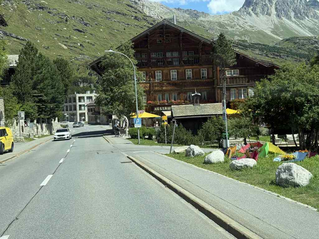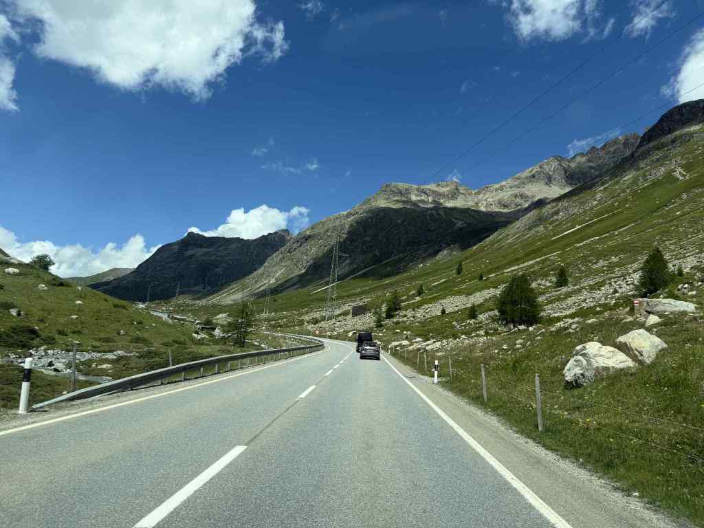 The drive took us over the mountain passes of ‘Passover del Maloja’, ‘Julierpass/Guglia’ and ‘Passover del Bernina’ and they were all stunning. Lots of switchbacks and high altitudes. We stopped at a Camperconnect site at the top of one of the passes to have lunch and take in the stunning scenery.